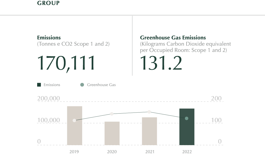 As methodologies evolve, as well as our understanding on how to address climate change in a meaningful way, so should our approaches in measuring our carbon footprint and in reducing our emissions over time. As part of our transition plan, from 2023 we will be changing our baseline from 2019 to 2022, to be in line with Science Based Targets initiative (SBTi) guidance and the latest climate science. Our business recognises the importance of continuous improvement and going above and beyond wherever possible, so in anticipation of improving our future reporting, we will also be extending the scope of our GHG footprint measurement from Scope 1 and Scope 2 for hotels only, to include non-hotel operations and Scope 3 emissions from 2023 reporting onwards.